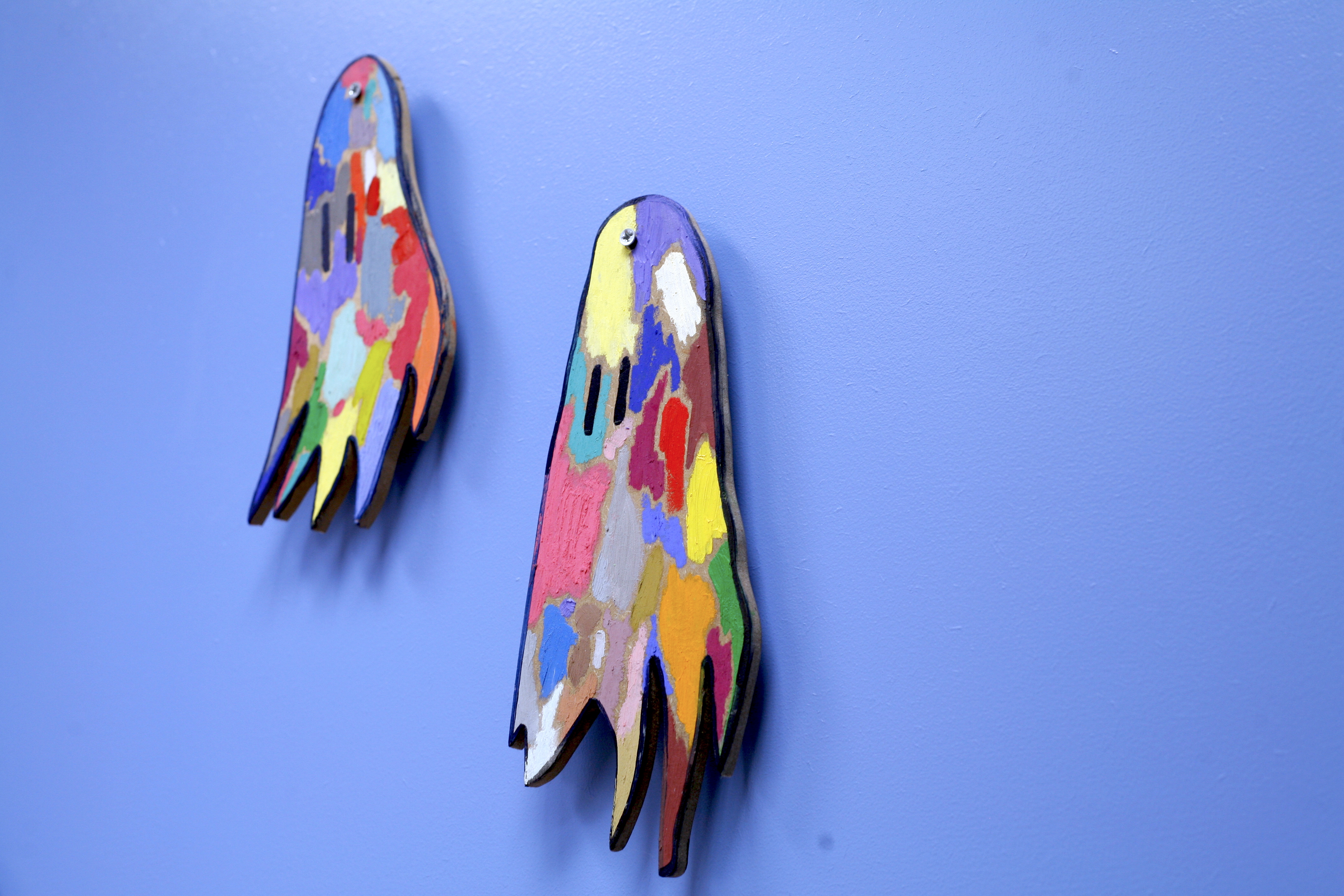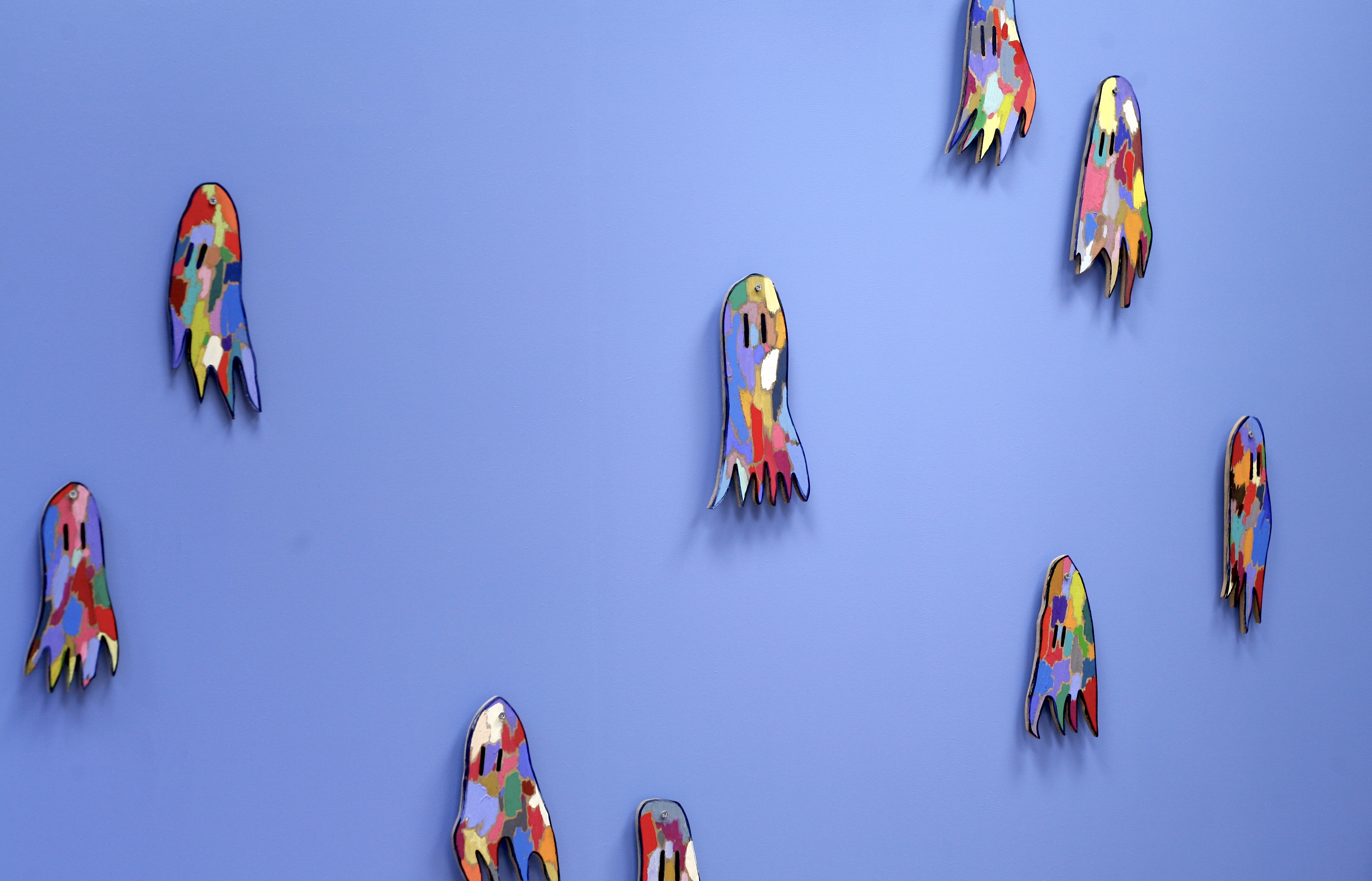 These constructed ghosts are made in various shapes, sizes and colour combinations. They come signed & numbered in their own bespoke box. They are part of an ongoing edition – made in batches of 10 and stopping when I make 100.